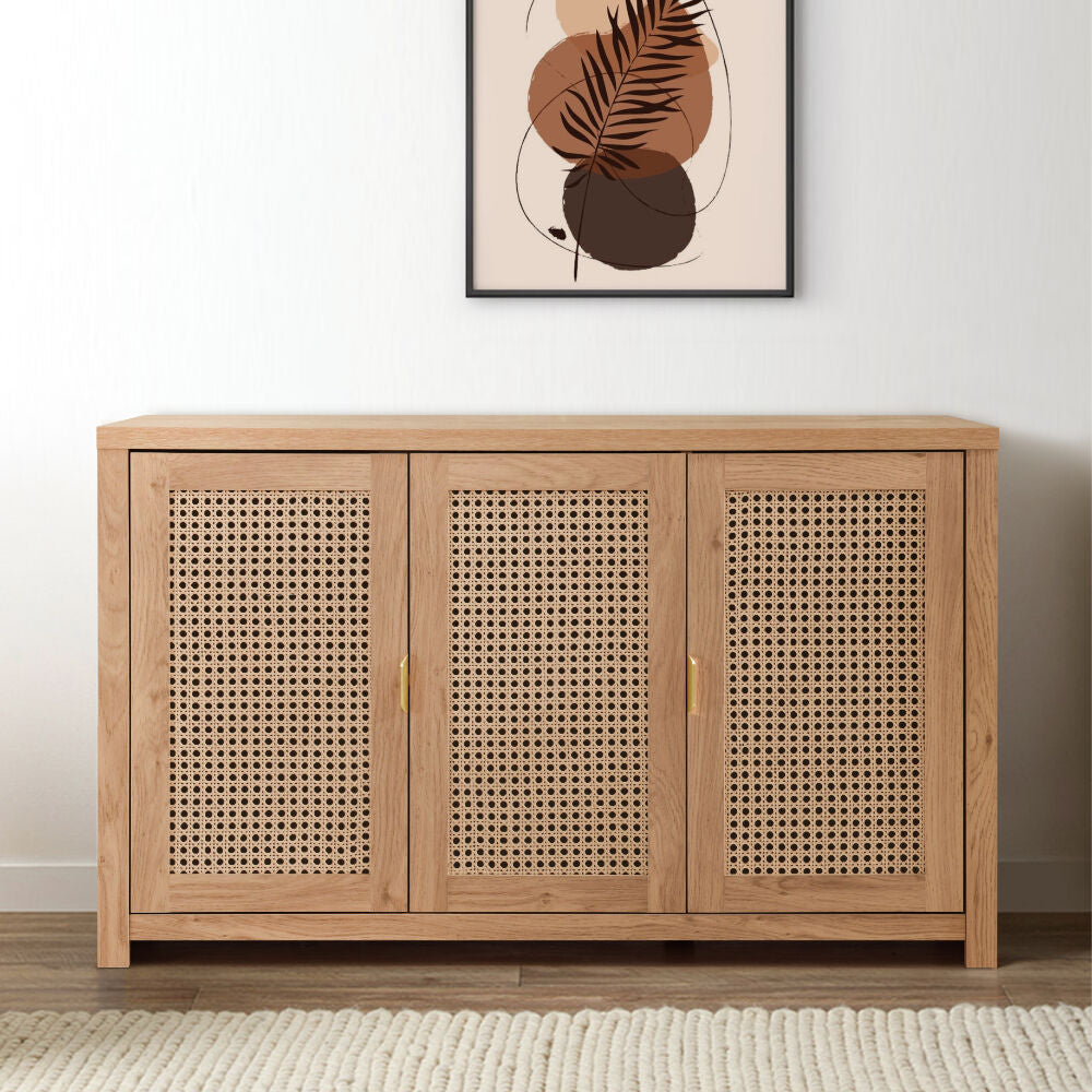 المواد: خشب طبيعي، خيزران/حبال، مقابض معدنية عالية الجودة.
