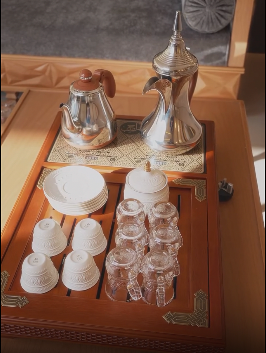 ليقدم القهوة أو الشاي العربي ذلك السحر والجمال مع أباريق الشاي والفناجين التقليدي، مما يضفي لمسة من الفخامة على أي مجتمع.