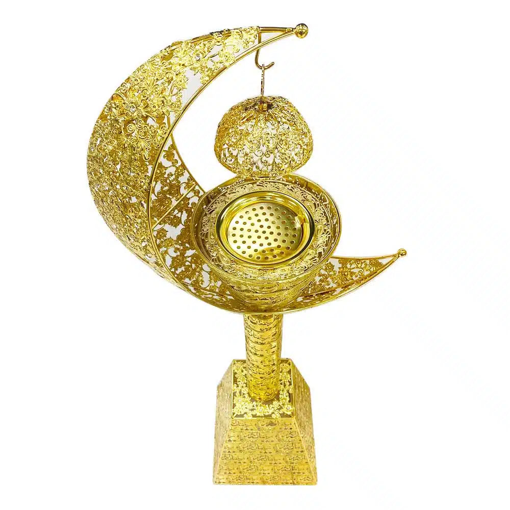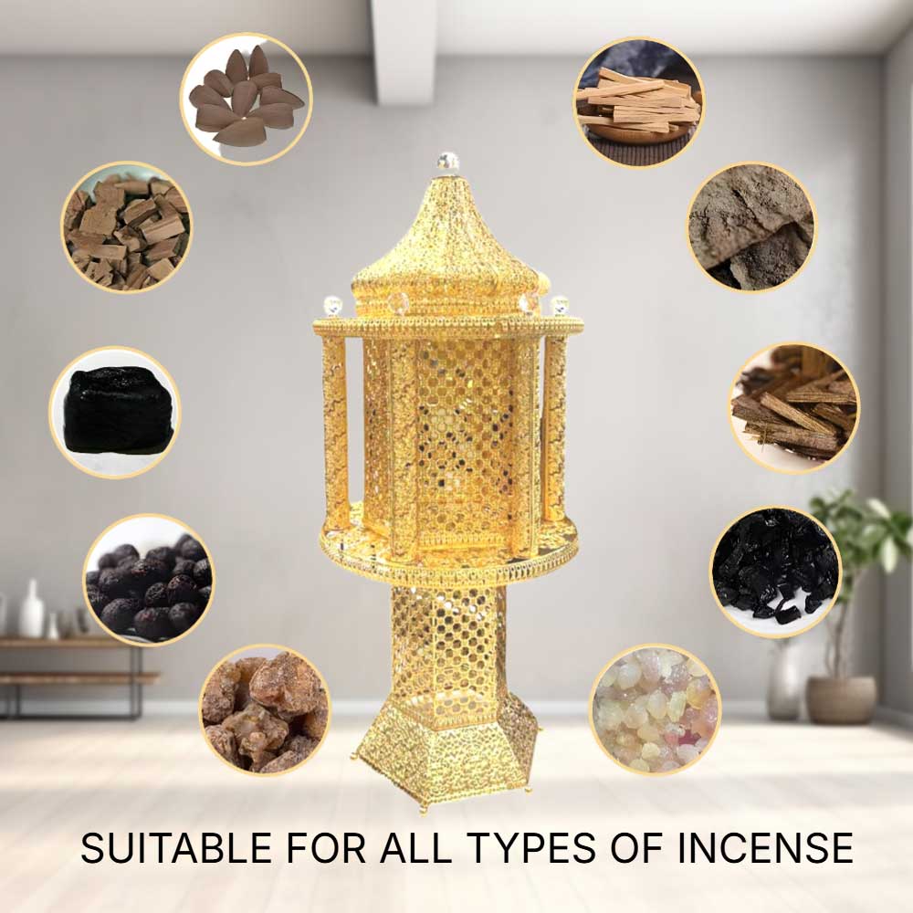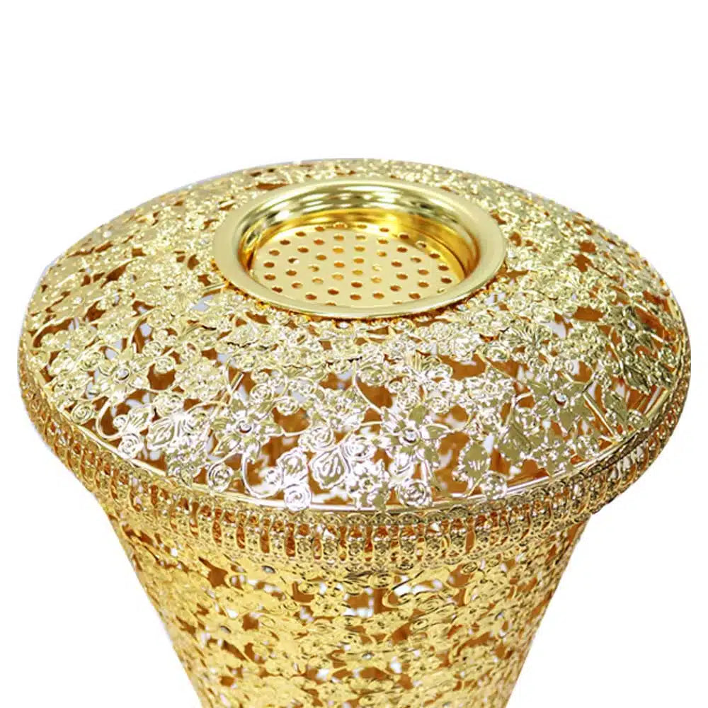 نقدم لكم تحفة بوتيك رسمي الفاخرة، مبخرة المبخرة الذهبية المنحوتة، رمز الأناقة والرقي. مزينة بغطاء علوي مرصّع بالجواهر، هذه المبخرة الرائعة تتجاوز المألوف وتضفي لمسة من الأناقة والفخامة على أي مساحة، سواءً كان منزلك العزيز أو مكتبك.
