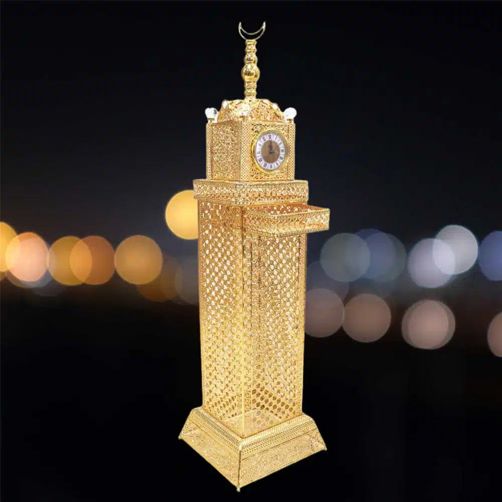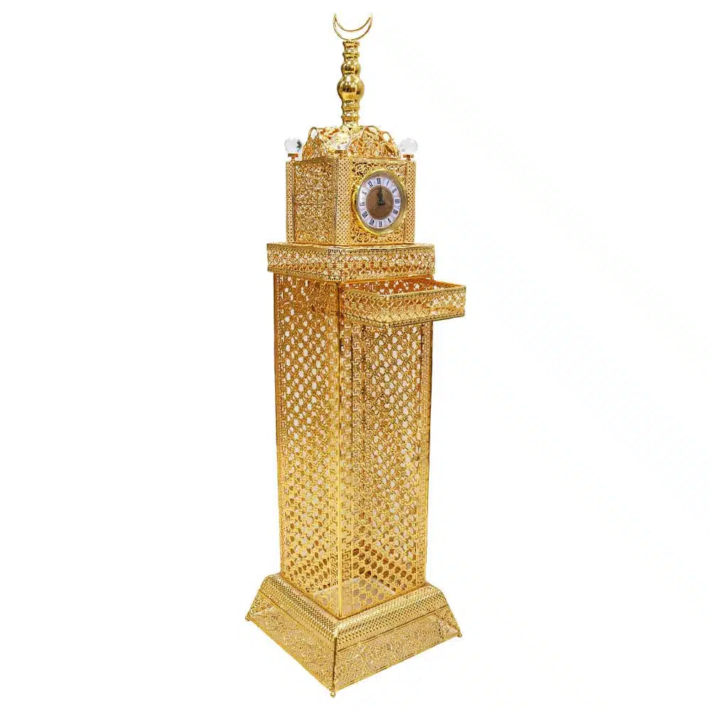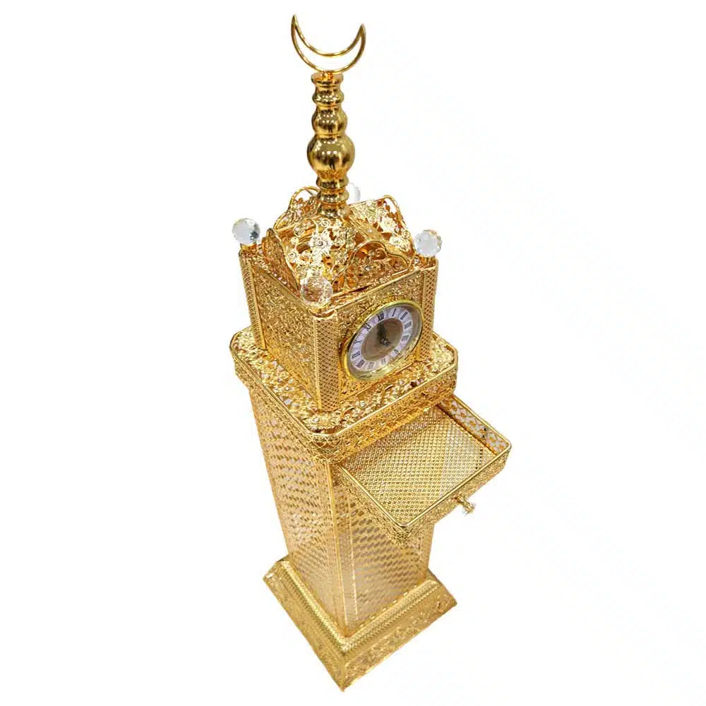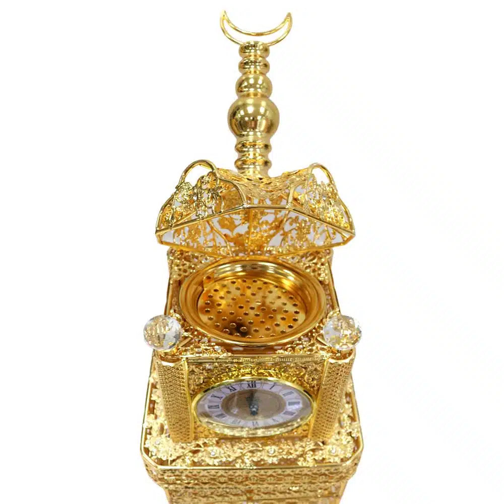 نقدم لكم تحفة بوتيك رسمي الفاخرة، مبخرة المبخرة الذهبية المنحوتة، رمز الأناقة والرقي. مزينة بغطاء علوي مرصّع بالجواهر، هذه المبخرة الرائعة تتجاوز المألوف وتضفي لمسة من الأناقة والفخامة على أي مساحة، سواءً كان منزلك العزيز أو مكتبك.