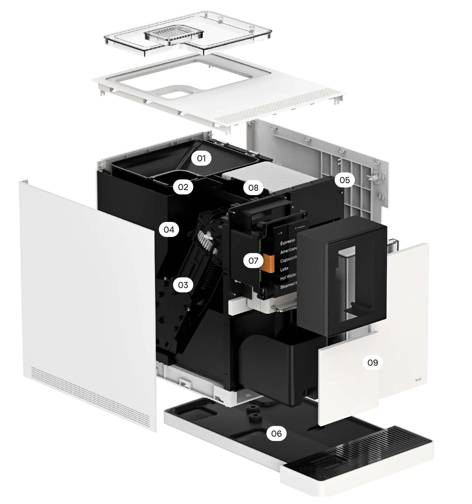 بالإضافة إلى سهولة تحضير القهوة، يستشعر جهاز TK-02 بذكاء وقت تشغيل دورات الشطف والتنظيف العميق. التنظيف سهل للغاية، ويتم خلف الكواليس تمامًا.